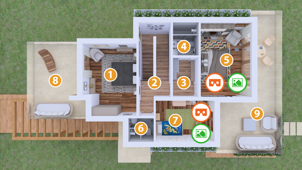 ![]() VR ikon: Tekintse meg a szoba 360 fokos látványtervét. Rendelkezik VR szemüveggel? Helyezze telefonját a szemüvegbe! |